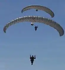 ![]() Military Free-Fall Advanced Tactical Infiltration Course students use new POM for high–altitude / high–opening jump, ca. 2011 |