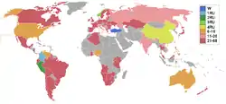 A total of 110 contestants from all over the world were initially invited to compete for the crown, but several contestants boycotted the pageant and others dropping out in protest for the death sentence by stoning determined by an Islamic Sharia court to Amina Lawal, a Nigerian woman accused of adultery, making a total of 88 girls competing for the crown. It was the first time that audience participation through text messaging together with the scores of the judges helped in determining the results for the Top 20.[3] Azra Akın from Turkey won the pageant,[2] becoming the first ever representative from her country to be crowned Miss World. She was crowned by Agbani Darego of Nigeria. Show organizers stated that the event had a global viewership of over 2 billion people, and that it was broadcast in 137 countries.[2] It was the first time in 51 years that it was not shown in the UK;[4] no British channel agreed to broadcast the event.[2][5]