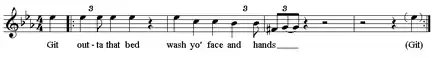 Shout-and-fall or tumbling strain is a modal frame, "very common in Afro-American-derived styles" and featured in songs such as "Shake, Rattle and Roll" and "My Generation".[6]