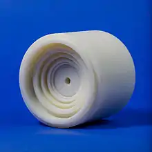 The NNS operates under the same principle as a Bonner sphere neutron spectrometer.[2] The sensitive part of the spectrometer is the Helium-3 proportional counter, which detects neutrons through the reaction 3He(n,p)3H. This particular reaction has a significant cross-section only at thermal neutron energies. In order for a higher energy neutrons to be detected their energies must be decreased, or "moderated". To slow down neutrons at higher energies the NNS uses different amounts of high-density polyethylene (HDPE). The He-3 proportional counter is surrounded by varying amounts of HDPE to sample various energy regions of the neutron field. The standard NNS has seven HDPE cylinders which are nested together, similar to Russian nesting dolls, to measure neutrons of higher and higher energies.