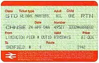 First Class supplement upgrade tickets were initially priced at a flat fare of £1.00 for both adults and children for any length of journey. This became £3.00 for adults and £1.50 for children in February 1990. The benefit was withdrawn upon the introduction of the first Network Railcard on 28 September 1997.[13]