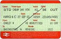 {{cite journal}}: Missing or empty|title=(help) - "ATOC National Fares Manual: Section F (Discounted Travel)" (PDF). Archived from the original (PDF) on 28 September 2007.