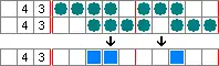 The same applies when there are more clues in the row. For example, in a row of ten cells with clues of 4 and 3, the bound blocks of boxes could be