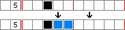 - From the left: Since the 6 is the first number, count 6 blocks from the left edge, ending in the 6th block. Now "backfill" 4 blocks (the number obtained in step 4), so that cells 3 through 6 are filled.