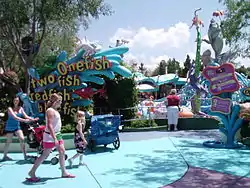 ![]() Entrance of the One Fish, Two Fish, Red Fish, Blue Fish ride at Islands of Adventure. | |