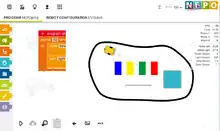 Since version beta 1.3.0 the Open Roberta Lab also offers a simulation environment. This is a simulation of a two-dimensional robot model equipped with two wheels (differential drive). To program the simulated robot also the programming language NEPO may be used. The simulated 2D model includes the simulation of an ultrasonic sensor, a touch sensor, a color sensor and the display of an LED. In addition, different environments can be chosen. Since version beta 1.4.0 NEPO blocks can used without any changes for the 2D-Simulation and the real robot.