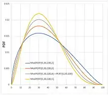 Probability density function ![]() Example density curves for the PERT probability distribution | |||