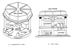 The device was designed to conduct three experiments, two of which failed. The first failed one was intended to test seed growth in microgravity in an unconventional way—by germinating seeds on a spinning disc. The degree of artificial gravity on the spinning wheel is highest (0.25 g or 2.5 m/s²) at its rim and lowest at its center. Using this fact, the influence of different levels of gravity on seed germination could be determined by placing seeds at different radial locations on the disk. At the end of the mission, the growth was to be arrested. After return the orientation of the roots were to be used to determine the threshold of gravity at which a plant could determine which way was down. A second failed experiment on fluid dynamics was intended to measure the bulk oscillations of a drop of mercury immersed in a clear liquid. A short circuit prevented the seed and mercury drop experiments from functioning.[1]