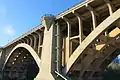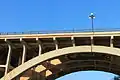The Paddock Viaduct, also known as the Main Street Viaduct, is a reinforced concrete bridge spanning the Trinity River in Fort Worth, Texas. Low-water crossings and ferries originally provided the only access across the Trinity River at this location, connecting the downtown area of Fort Worth with northern sections of the city. A two-lane suspension bridge, constructed near this site in the 1890s, proved inadequate for the growing population. This span, designed by the St. Louis engineering firm of Brenneke and Fay, was completed in 1914.[1] It was the first reinforced concrete arch in the nation to use self-supporting, reinforcing steel. The bridge is named in honor of B. B. Paddock, former State Legislator and Mayor of the City (1980).