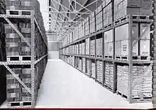 Pallet rack is a material handling storage aid system designed to store materials on pallets (or “skids”). Although there are many varieties of pallet racking, all types allow for the storage of palletized materials in horizontal rows with multiple levels. Forklift trucks are usually required to place the loaded pallets onto the racks for storage. Since the Second World War, pallet racks have become a ubiquitous element of most modern warehouses, manufacturing facilities, retail centers, and other storage and distribution facilities. All types of pallet racking increase storage density of the stored goods. Costs associated with the racking increases with increasing storage density.