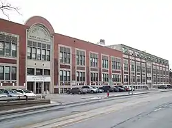 Pierce Arrow Factory Complex is a national historic district consisting of the former Pierce-Arrow automobile factory located at Buffalo in Erie County, New York. Located over a 34-acre (14 ha) site, it consists of a three-story, 132,970-square-foot (12,353 m2) Administration Building and an assortment of automobile manufacturing and assembly related structures. The buildings are principally constructed of reinforced concrete, and the Administration Building is considered one of the two earliest fully realized examples of the Daylight Factory industrial architecture style (the other being the Packard 10 Building in Detroit).[2] : p.82 It was designed by Albert Kahn in about 1906 and served as the headquarters and production facility for Pierce-Arrow automobiles until 1938. Since then, the complex has been subdivided over the years to provide affordable space for many small companies and organizations. At one time local department store chain AM&A's operated a furniture warehouse in part of the complex.[3]