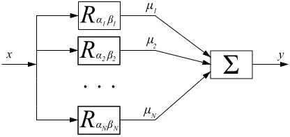 The Preisach model consists of many relay hysterons connected in parallel, given weights, and summed. This is best visualized by a block diagram: