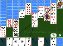Die Pyramide is a patience game of medium difficulty that is played with 104 playing cards. It is also known as Big Harp. It has one more stack than Double Klondike, which makes the game easier. The name is German and means "The Pyramid". It is not related to the patience game of Pyramid.