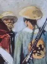 Han Chinese also made barbarians undo their queues when conquering them. To show submission to the Han Chinese of the Sui dynasty, the people of Turfan (Gaochang) undid their queues, as did the Göktürks upon surrendering to the Tang dynasty. Hairstyles showed affiliation to a tribal confederation or dynasty.[9] Xianbei people among foreigners are depicted on paintings with their rear heads showing a small queue in the Western Wei cave 285 at the Mogao Caves in Dunhuang[10] The queue was far older than the Manchus. The Chinese word for queue, bian, meant plaited hair or a cord. Bian used to describe the braid in the Manchu queue hairstyle was originally applied by the Han dynasty to the Xiongnu. Jurchen people wore a queue like the Manchu, the Khitan people wore the Tartar style and during the Tang dynasty, tribes in the west wore braids.[11][12]