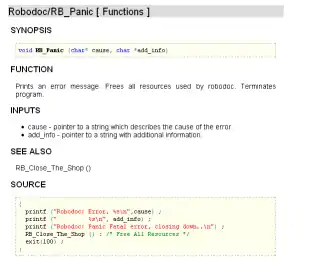 ROBODoc is a documentation tool similar to Javadoc and licensed under the GPL. It is used to extract API documentation from source code. It can be used with any language that supports comments and works by extracting specially formatted headers. These are then reformatted into HTML, DocBook, TROFF, ASCII, LaTeX, PDF, or RTF.
