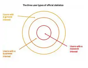 Official statistics are intended for a wide range of users including governments (central and local), research institutions, professional statisticians, journalists and the media, businesses, educational institutions and the general public. There are three types of users: those with a general interest, business interest or research interest. Each of these user groups has different needs for statistical information.