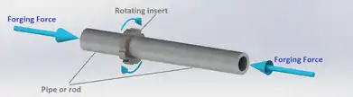 - Step 4, upsetting stage: the welded elements are still forging by forge pressure (pressed down),