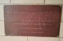 Skerman Chambers in Townsville, built next to the Townsville Supreme Court Building were named after him.[12] The Queensland Legal Aid Department and other lawyers have offices in the building.