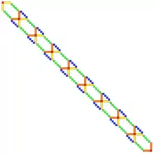 The method has been extended to the Generalized Rybicki-Press algorithm for inverting matrices with entries of the form .[2] The key observation in the Generalized Rybicki-Press (GRP) algorithm is that the matrix is a semi-separable matrix with rank (that is, a matrix whose upper half, not including the main diagonal, is that of some matrix with matrix rank and whose lower half is also that of some possibly different rank matrix[2]) and so can be embedded into a larger band matrix (see figure on the right), whose sparsity structure can be leveraged to reduce the computational complexity. As the matrix has a semi-separable rank of , the computational complexity of solving the linear system or of calculating the determinant of the matrix scales as , thereby making it attractive for large matrices.[2]