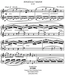 For example, to create these two bars of Bach's Fugue in C minor, BWV 847 from Book I of the Well-Tempered Clavier:[9]