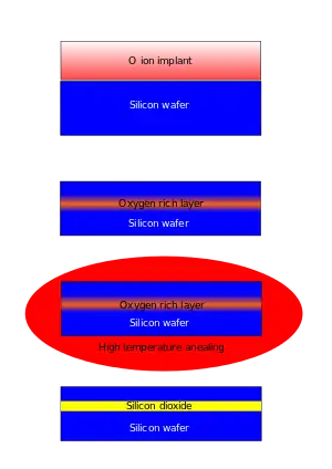 - SIMOX - Separation by IMplantation of OXygen – uses an oxygen ion beam implantation process followed by high temperature annealing to create a buried SiO2 layer.[13][14]