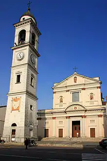San Michele, locally called in dialect, Gésa Granda, is the Roman Catholic parish church located in the city center at Piazza Dante Alighieri in the town Cameri, province of Novara, Piedmont, Italy.