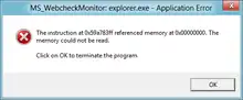 In computing, a segmentation fault (often shortened to segfault) or access violation is a fault, or failure condition, raised by hardware with memory protection, notifying an operating system (OS) the software has attempted to access a restricted area of memory (a memory access violation). On standard x86 computers, this is a form of general protection fault. The operating system kernel will, in response, usually perform some corrective action, generally passing the fault on to the offending process by sending the process a signal. Processes can in some cases install a custom signal handler, allowing them to recover on their own,[1] but otherwise the OS default signal handler is used, generally causing abnormal termination of the process (a program crash), and sometimes a core dump.