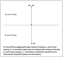 When a seismic wave encounters a boundary between two materials with different acoustic impedances, some of the energy in the wave will be reflected at the boundary, while some of the energy will be transmitted through the boundary. The amplitude of the reflected wave is predicted by multiplying the amplitude of the incident wave by the seismic reflection coefficient , determined by the impedance contrast between the two materials.