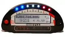 A shift light is a warning lamp fitted to vehicles in order to indicate to the driver that maximum revolutions per minute (r/min) has almost been reached. Ideally a shift lamp will illuminate at the engine speed beyond that which delivers the maximum power, measured in for example kilowatt (kW) or brake horsepower (BHP), such that the power before and after shifting is the same. Accelerating the engine beyond this point is not conducive to rapid acceleration. In use a shift light allows the driver to judge the exact point that a gear change should be carried out without having to glance down at the tachometer. This also increases safety for the driver by keeping his focus on the track at all times.