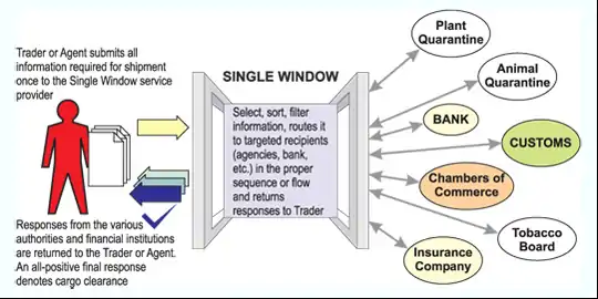These inevitable various controls can be carried out through the Single Window system, supported by information technology, and is an optimized process. You can understand Single Window's Benefits from the below two diagrams, exemplifying trade with and without Single Window.