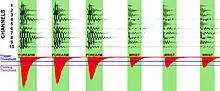 Skinput has been publicly demonstrated as an armband, which sits on the biceps. This prototype contains ten small cantilevered Piezo elements configured to be highly resonant, sensitive to frequencies between 25 and 78 Hz.[4] This configuration acts like a mechanical Fast Fourier transform and provides extreme out-of-band noise suppression, allowing the system to function even while the user is in motion. From the upper arm, the sensors can localize finger taps provided to any part of the arm, all the way down to the finger tips, with accuracies in excess of 90% (as high as 96% for five input locations).[5] Classification is driven by a support vector machine using a series of time-independent acoustic features that act like a fingerprint. Like speech recognition systems, the Skinput recognition engine must be trained on the "sound" of each input location before use. After training, locations can be bound to interactive functions, such as pause/play song, increase/decrease music volume, speed dial, and menu navigation.