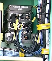 In 1992, Inter-Coastal Electronics[7] was selected by U.S. Army Communications Electronics Command (CECOM)[8] to provide the real-time casualty assessment (RTCA) interface for the AH-64 Apache Attack Helicopter. This component was called the onboard data interface module (ODIM). As the Army incorporated new technologies, the SMODIM added GPS and telemetry and became the core component of live helicopter training systems at all U.S. Army Combat Training Centers (CTCs) with a fielding of over 240 systems. In 1997, the SMODIM was modified to provide a proof of concept for the upgraded AH-64 (D model) Longbow Apache. In 1998 the "Modular" SMODIM and the longbow tactical engagement simulation system (TESS) training system was fielded to all three CTCs and Aviation Home Stations, and became the U.S. Army's first fully integrated live aviation training system.[9] Over the following 15 years, the SMODIM has deployed in multiple systems and platforms with over one thousand SMODIMs fielded in the U.S. and abroad. An "Advanced" SMODIM or "ASMODIM" is currently in development due to parts obsolescence and will provide an 80% increased processing performance. Security encryption is in accordance with FIPS 140-2 level 2. Advanced weapon simulation is augmented by digital terrain elevation data (DTED) and geometric ranging. Data communication and data transmission upgrades utilize RS-422 and RS-485 full duplex channels, and ARINC 429 technical standards.