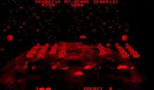 Space Invaders Virtual Collection was released by Taito for the Virtual Boy in Japan on December 1, 1995.[2] Development of the game was headed by director Toshiki Sakai, with programming done by Tatsuya Kitasawa and music composed by Fumito Tamayama. Tomohiro Nishikado, the creator of the original Space Invaders, is also credited for the arcade game ports.[3] Like all other titles for the Virtual Boy, it uses a red and black color scheme and 3D visual effects.[4]