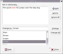 A screenshot of Enchant, the AbiWord spell checker.