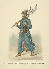 Streltsy (Russian: стрельцы́, IPA: [strʲɪlʲˈt͡sɨ], lit. 'shooters/riflemen'; sg. стреле́ц IPA: [strʲɪˈlʲet͡s]) were the units of Russian firearm infantry from the 16th to the early 18th centuries and also a social stratum, from which personnel for streltsy troops were traditionally recruited. They are also collectively known as streletskoye voysko (стрелецкое войско, riflemen army). These infantry troops reinforced feudal levy horsemen or pomestnoye voysko (поместное войско).