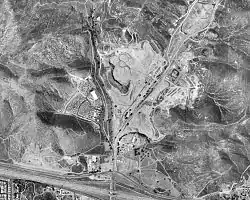 ![]() USGS satellite photo of the Stringfellow Acid Pits located north of California State Route 60. | |