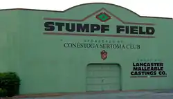 The Lancaster Red Roses played at Stumpf Field from 1938 to 1961. The team folded in 1961, and Stumpf Field has since been relegated as a local baseball and softball venue. It was sold to Jeff Sweigart, owner of McMinn's Asphalt and a baseball enthusiast, in 2003 and renovated for local baseball leagues for players ages 20–40, as well as for 40 and older.[2] Stumpf Field served as home of the Millersville University Marauders baseball team prior to the 2007 season, until a new stadium was erected on campus.[3]