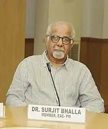 Surjit Bhalla is an Indian economist, author and columnist,[1] who is currently the Executive Director for India at the International Monetary Fund (IMF). He was appointed as a member of the newly formed Economic Advisory Council to the second Modi ministry,[2] from where he resigned in December, 2018.[3][4]
