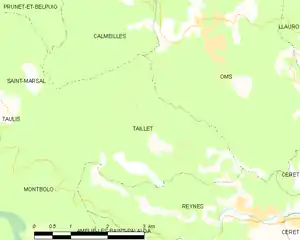 Map of Taillet and its surrounding communes