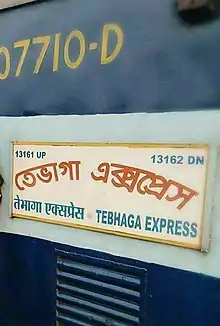 ![]() Tebhaga Express train board | |