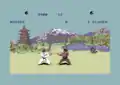 The player takes part in a series of one-on-one karate matches, all overseen by a wise old expert who appears in the background. Once the player defeats an opponent they move up to the next stage and a more difficult adversary. Fights are not won using the energy-bar style found in modern fighting games; instead, the player needed to get two complete yin-yangs. Any move that connected with the opponent would end the round; a loosely timed or borderline kick or punch would obtain half a yin-yang icon, while a well-executed move would obtain a full icon. Two complete icons ended the bout and progressed to the next level.