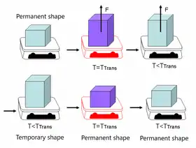 - The system is programmed, i.e. it is heated up to TTrans and at that temperature the shape is modified by applying pressure or stress. Then the material is cooled and finally the pressure or stress is removed.