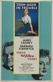 These Wilder Years is a 1956 American drama film directed by Roy Rowland and starring James Cagney and Barbara Stanwyck. It is the story of a businessman who tries to find the illegitimate son he gave up to an orphanage many years ago.