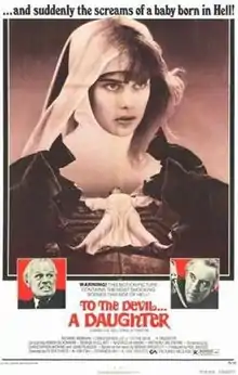 To the Devil...a Daughter is a 1976 British-West German horror film directed by Peter Sykes, produced by Hammer Film Productions and Terra Filmkunst, and starring Richard Widmark, Christopher Lee, Honor Blackman, Nastassja Kinski and Denholm Elliott. It is based on the 1953 novel of the same name by Dennis Wheatley. It was the final Hammer production to feature Christopher Lee until The Resident in 2011. On home videocassette the film was released with the alternate title Child of Satan.[2]
