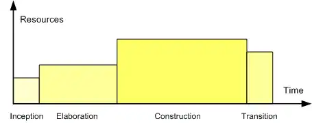 Each phase will generally contain multiple iterations (named I1, E1, E2, C1, etc. in the UP phase illustration). The exact number of iterations in each phase depends on the scale and nature of the project. Note that the UP phase illustration here contains exactly 1, 2, 4 and 2 iterations in the four phases, but this is merely an example of how a specific project could look.