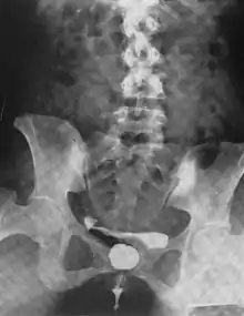 Urethral diverticulum is often an incidental finding.[2] It can be diagnosed using magnetic resonance imaging and/or micturating cystourethrography.[1] Other studies that can be used to diagnose urethral diverticulum include intravenous urography, urethroscopy, and/or ultrasound. Conditions that should be distinguished from urethral diverticulum in a differential diagnosis include overactive bladder, Gartner's duct cyst, Gartner's duct abscess, ectopic caeco-ureterocele, interstitial cystitis, pelvic inflammatory disease, endometriosis, and cancer.[3]
