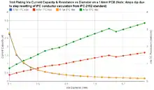 If well made, PCB vias will primarily fail due to differential expansion and contraction between the copper plating and the PCB in the out of plane direction (Z). This differential expansion and contraction will induce cyclic fatigue in the copper plating, eventually resulting in crack propagation and an electrical open circuit. Various design, material, and environmental parameters will influence the rate of this degradation.[4][5] To ensure via robustness, IPC sponsored a round-robin exercise that developed a time to failure calculator.[6]