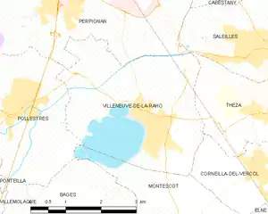 Villeneuve-de-la-Raho is located in the canton of La Plaine d'Illibéris and in the arrondissement of Perpignan. The town is the location of Lac de Villeneuve-de-la-Raho.