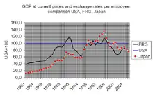 In 2002, the OECD defined it as "the ratio of a volume measure of output to a volume measure of input".[1] Volume measures of output are normally gross domestic product (GDP) or gross value added (GVA), expressed at constant prices i.e. adjusted for inflation. The three most commonly used measures of input are: